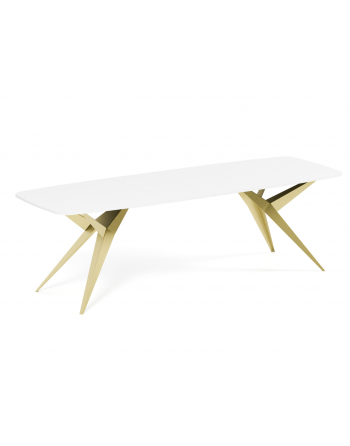 Ausziehtisch mit goldenem Gestell. Wohnzimmertisch. Esstisch. Ausziehbar bis 236 cm. Esstisch ausziehbar.