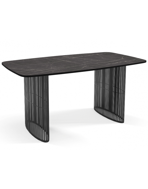 Ausziehbarer Tisch 160 cm lang, auf weißem Gestell. Esstisch. Moderner Tisch. Tisch auf schwarzem Metallgestell.