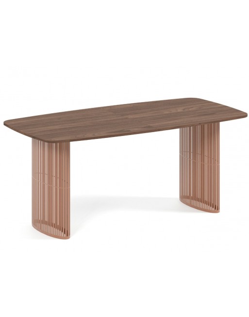 Ausziehbarer Tisch 180 cm lang, auf weißem Gestell. Esstisch. Moderner Tisch. Tisch auf einem kupfernen Lamellenrahmen.