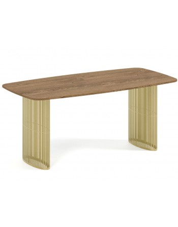 Der Tisch ARDIA begeistert mit seiner architektonischen Form: Eine ovale Tischplatte ruht scheinbar schwebend auf zwei filigranen, durchbrochenen Beinen. Deren rhythmische Konstruktion erinnert an Licht, das durch Baumkronen fällt, oder an sanfte Spiegelungen auf einer Wasseroberfläche. Das Ergebnis ist eine harmonische Verbindung aus Leichtigkeit und Stabilität, die dem Raum Offenheit, Ruhe und subtile Dynamik verleiht.