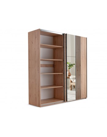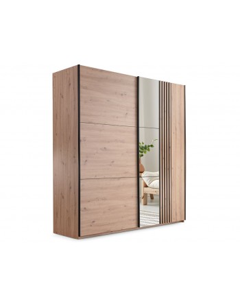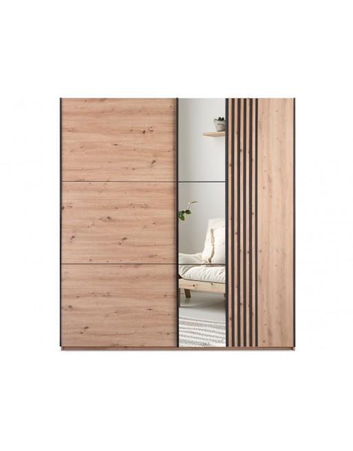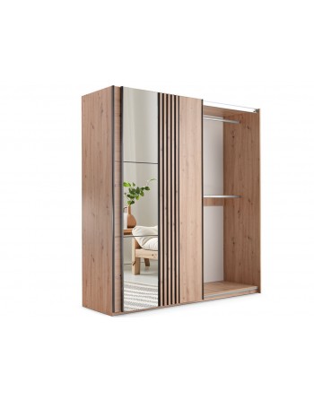 Kleiderschrank mit dekorativen Lamellen. Schlafzimmerschrank mit Spiegel. Schiebeschrank 203 cm. Ein geräumiger Kleiderschrank für das Schlafzimmer.