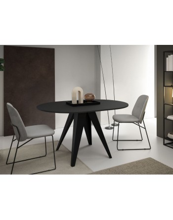 Schwarzer ausziehbarer Tisch. Tisch mit Metallbeinen. Ein moderner Tisch für das Wohnzimmer. Ausziehbarer Tisch, Durchmesser 90 cm. Runder schwarzer Tisch.